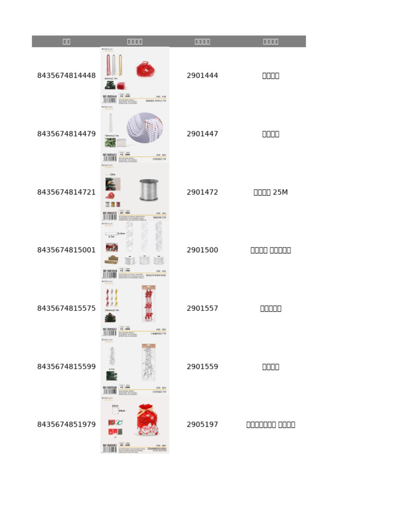 条码 产品图片 产品编码 产品名称