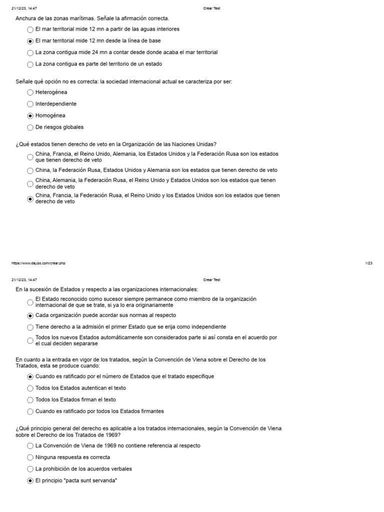 Marque la respuesta correcta: los principios de Bandung son los que marcan la actuación de los:
