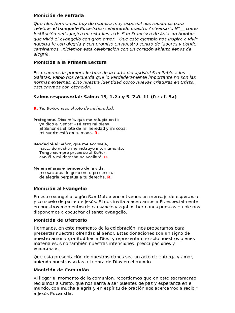 celebrar el banquete Eucarístico celebrando nuestro Aniversario N°__ como
