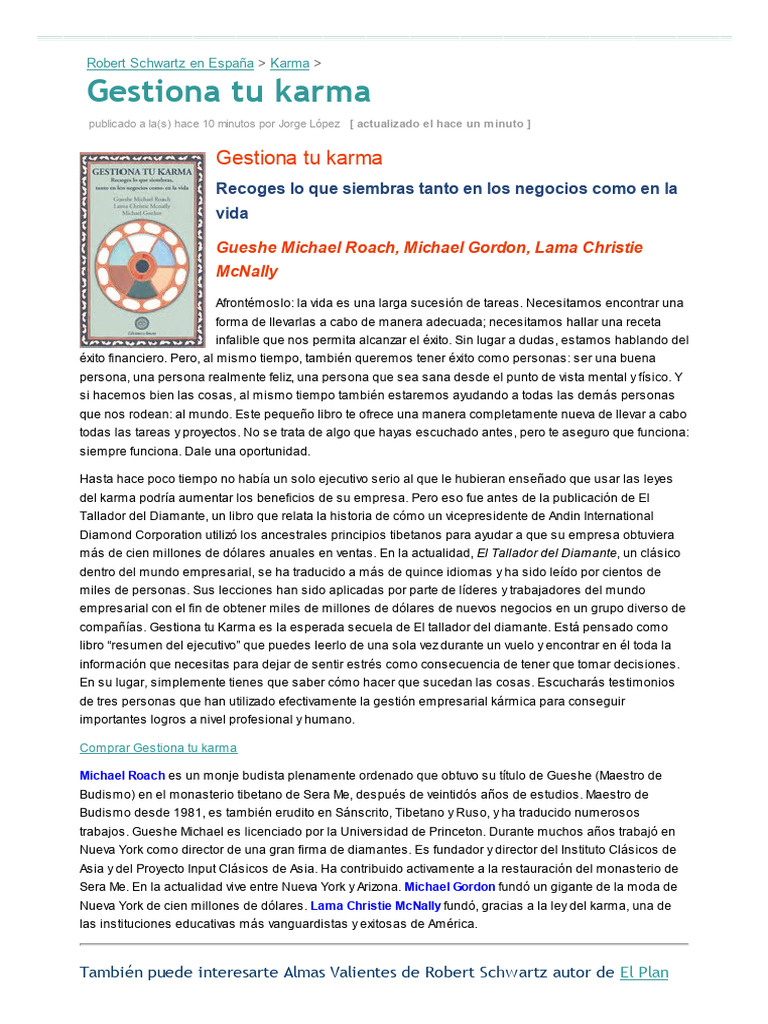 compañías. Gestiona tu Karma es la esperada secuela de El tallador del diamante. Está pensado como