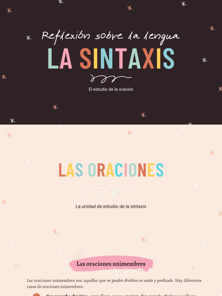 Las oraciones unimembres son aquellas que no pueden dividirse en sujeto y predicado. Hay diferentes
