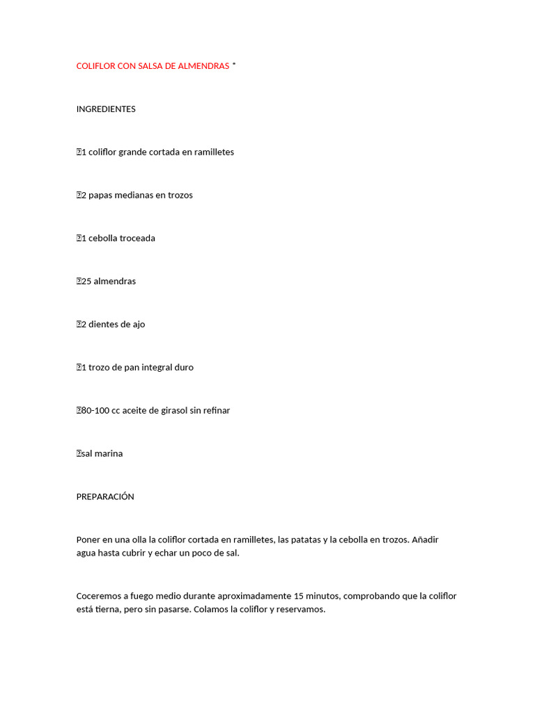 COLIFLOR CON SALSA DE ALMENDRAS *