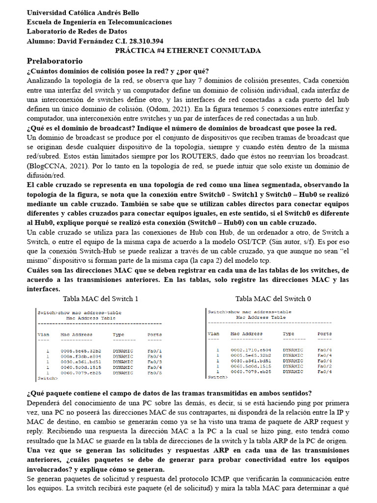 PRÁCTICA #4 ETHERNET CONMUTADA