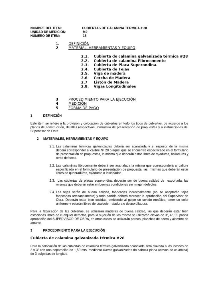 NOMBRE DEL ITEM: CUBIERTAS DE CALAMINA TERMICA # 28