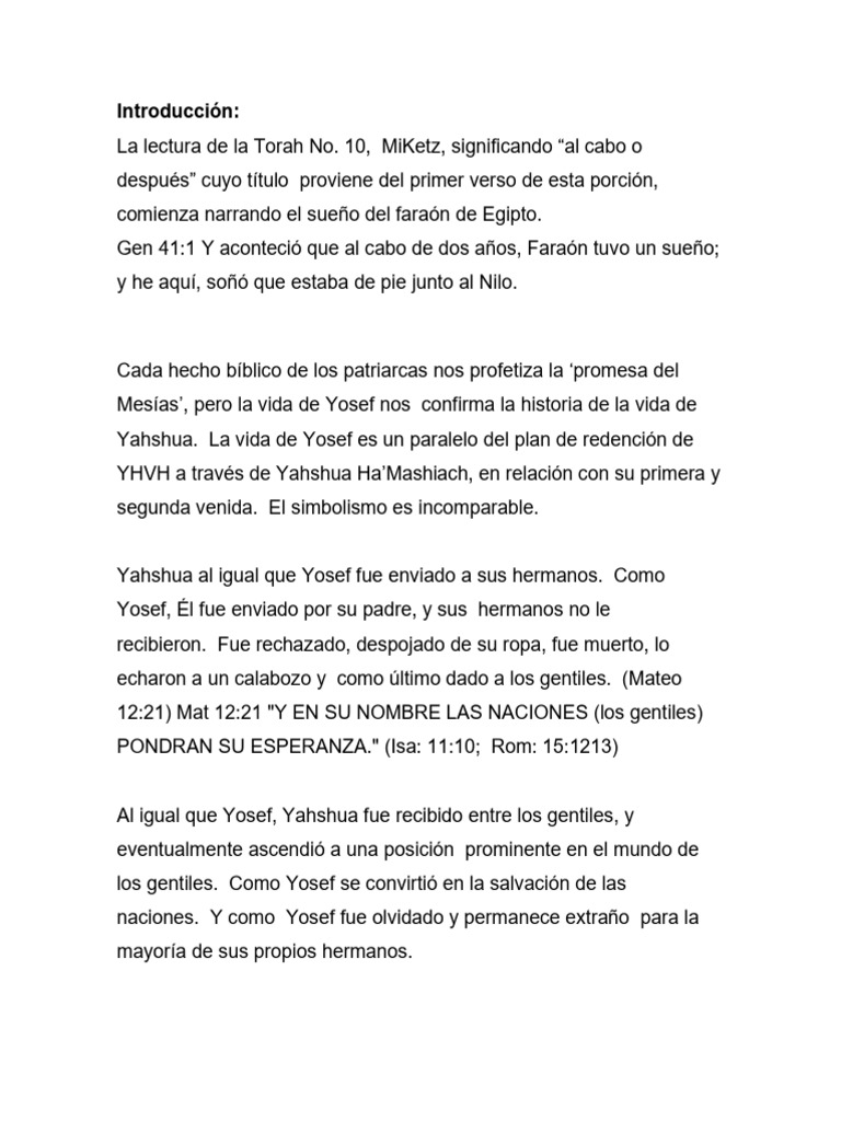 propia sangre. Yosef por el contrario, les explico el plan divino de