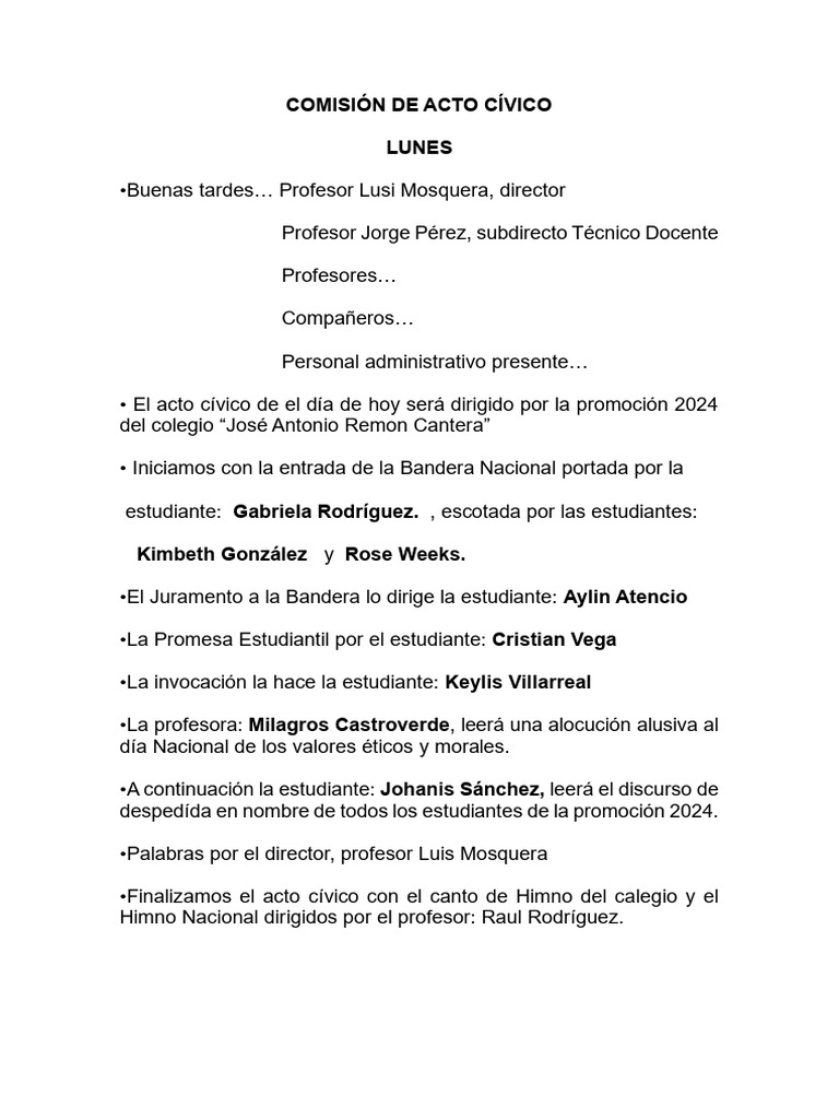 • El acto cívico de el día de hoy será dirigido por la promoción 2024