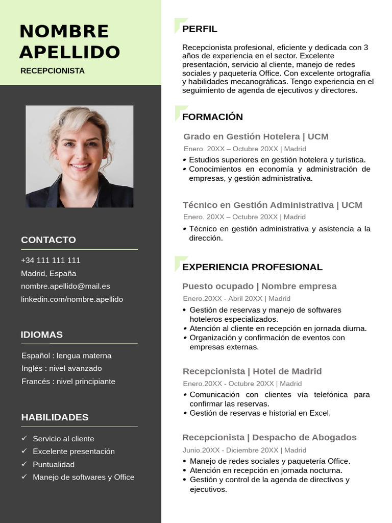 APELLIDO Recepcionista profesional, eficiente y dedicada con 3