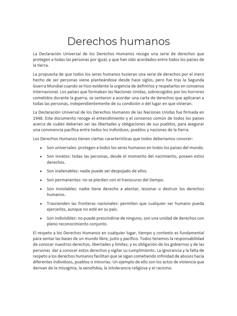 Los Derechos Humanos tienen ciertas características que todos deberíamos conocer: