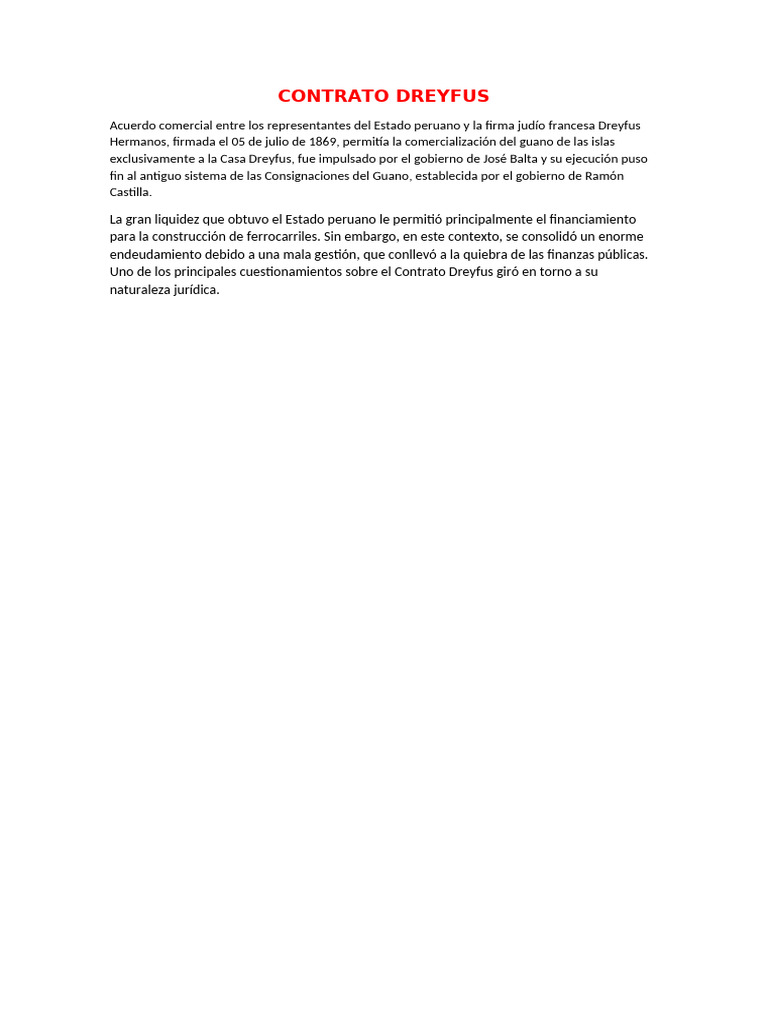 Acuerdo comercial entre los representantes del Estado peruano y la firma judío francesa Dreyfus