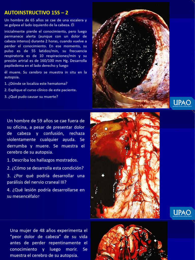 cerebral, dando lugar a su herniación. En el tejido herniado se pueden observar necrosis y hemorragias