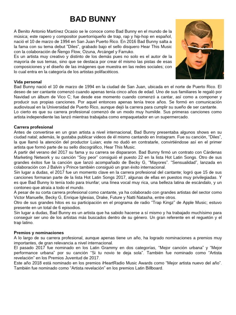 nació el 10 de marzo de 1994 en San Juan Puerto Rico. En 2016 Bad Bunny salta a
