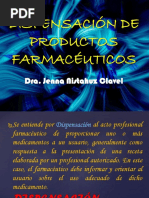 La dispensación de los medicamentos u otros productos farmacéuticos de
