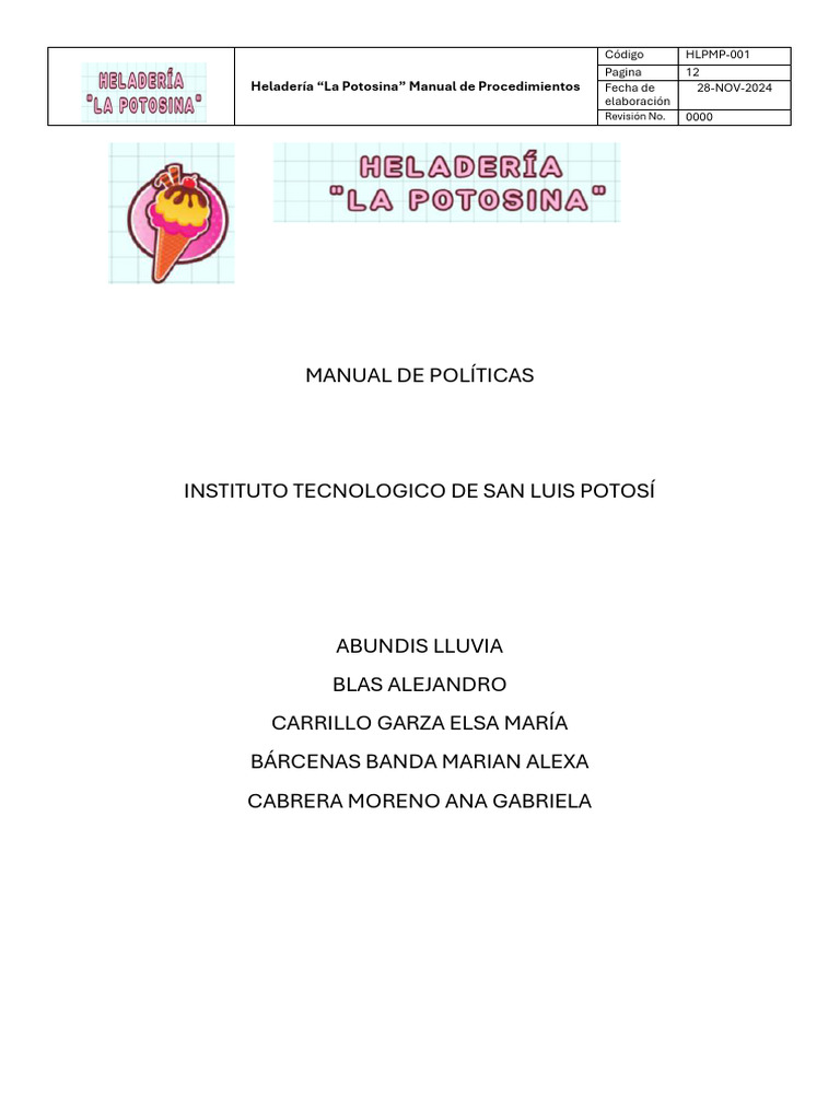 Heladería “La Potosina” Manual de Procedimientos Fecha de 28-NOV-2024