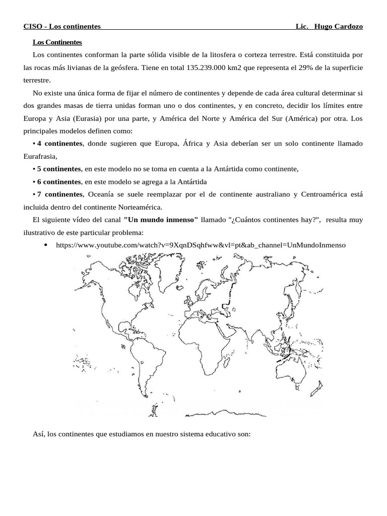 El siguiente vídeo del canal "Un mundo inmenso" llamado "¿Cuántos continentes hay?", resulta muy