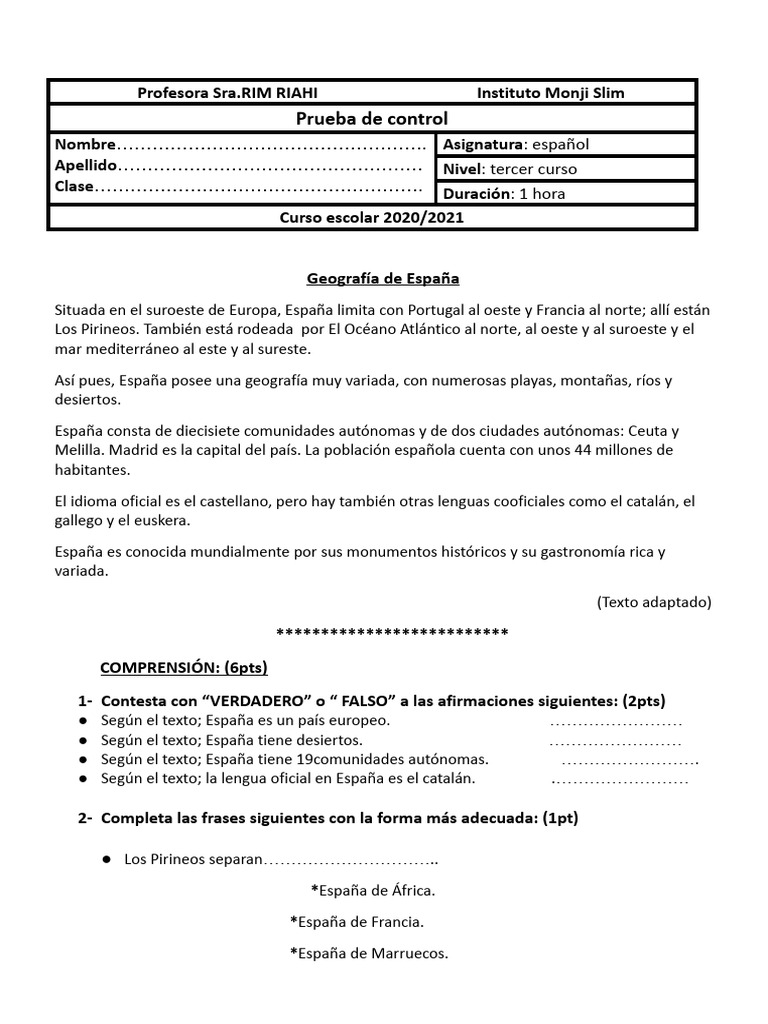 3- ¿Según el texto; cuáles son las fronteras de España? (1.5pt)