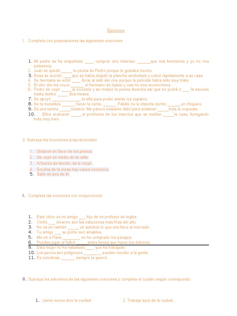 Completa con preposiciones las siguientes oraciones: