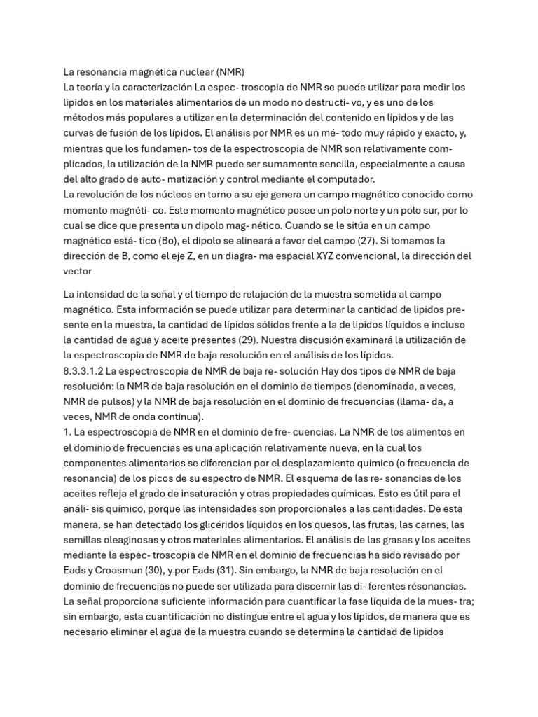 espectroscopia de NMR a los productos ali- mentarios, especialmente en términos de