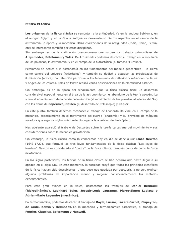 Dentro de la categora de la fsica clsica se incluyen: Mecnica Clsica: