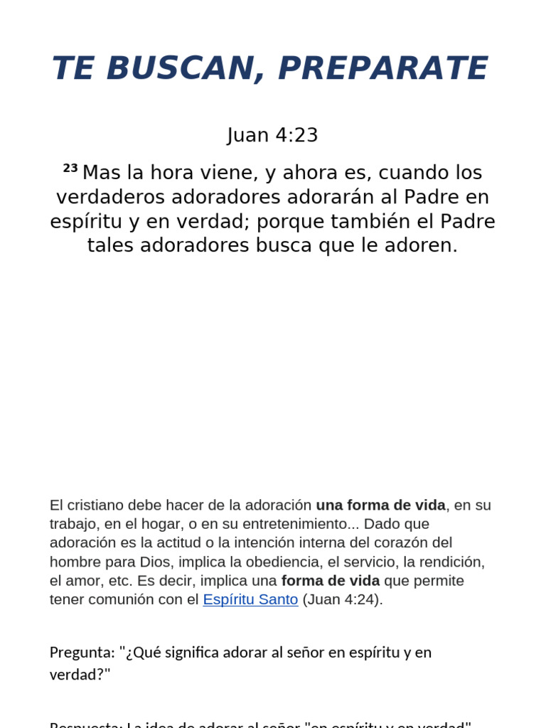(Marcos 12:30; Lucas 10:27). Adorar a Dios en espíritu y en verdad