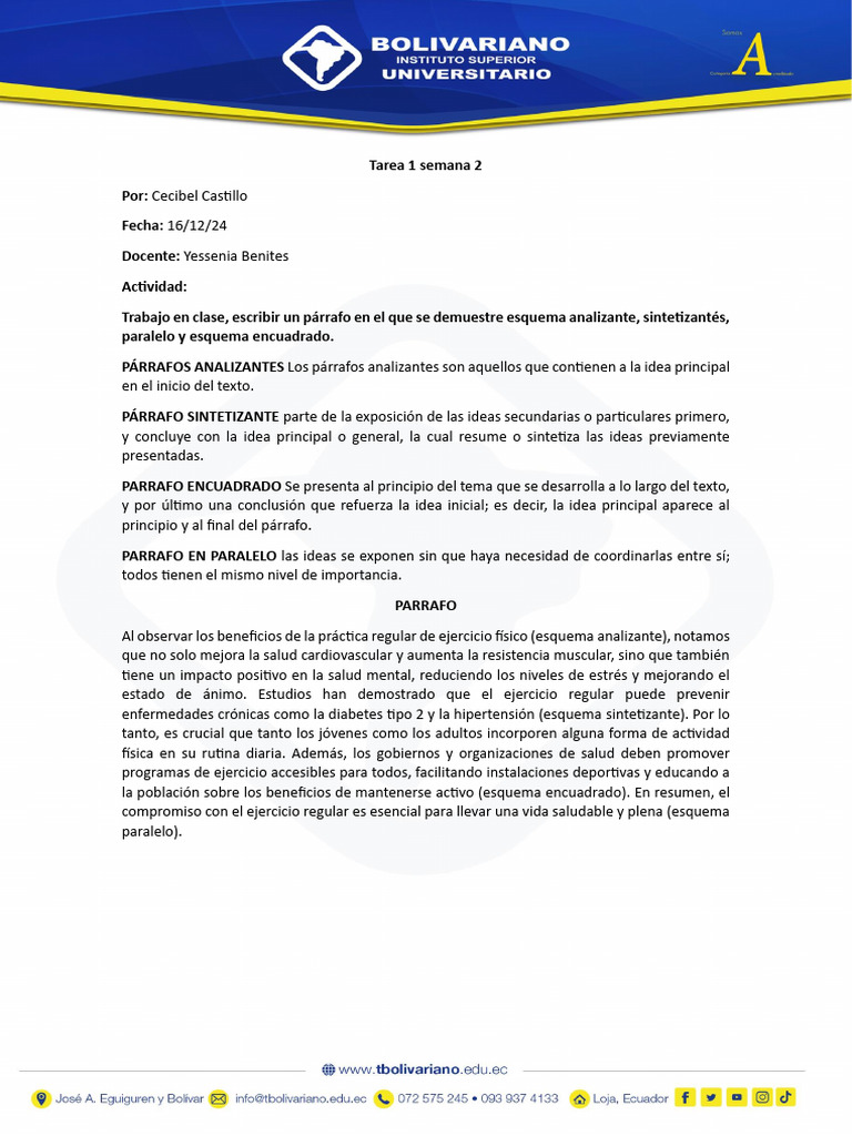 Trabajo en clase, escribir un párrafo en el que se demuestre esquema analizante, sintetizantés,