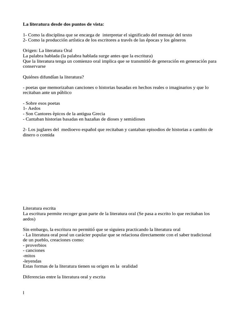 Origen: La literatura Oral