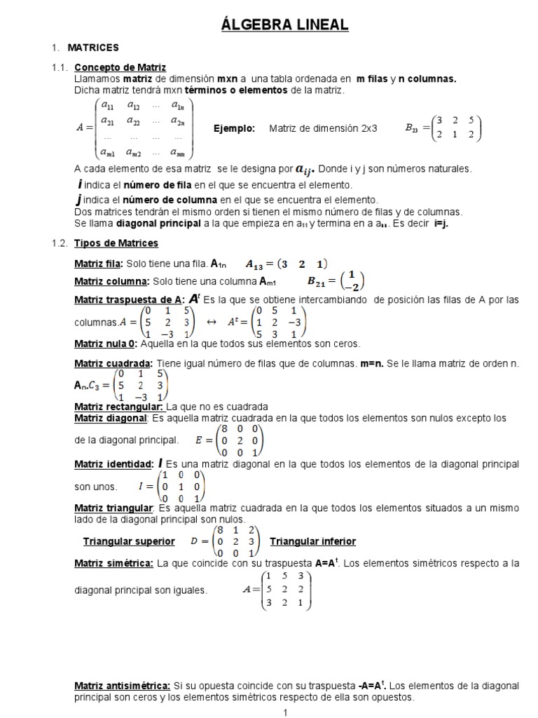 Matriz identidad: I Es una matriz diagonal en la que todos los elementos de la diagonal principal