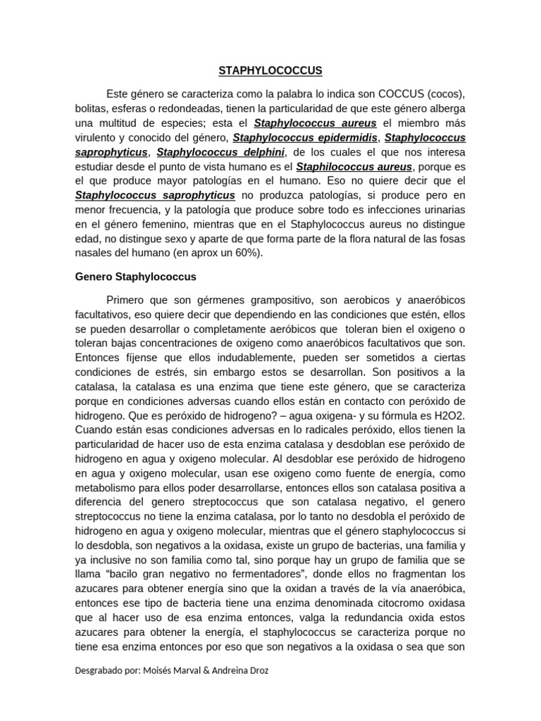 hidrogeno en agua y oxigeno molecular, mientras que el género staphylococcus si