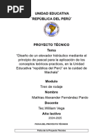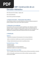 El presente informe describe el desarrollo y armado de un elevador hidráulico, un proyecto