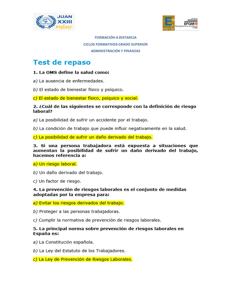 4. La prevención de riesgos laborales es el conjunto de medidas