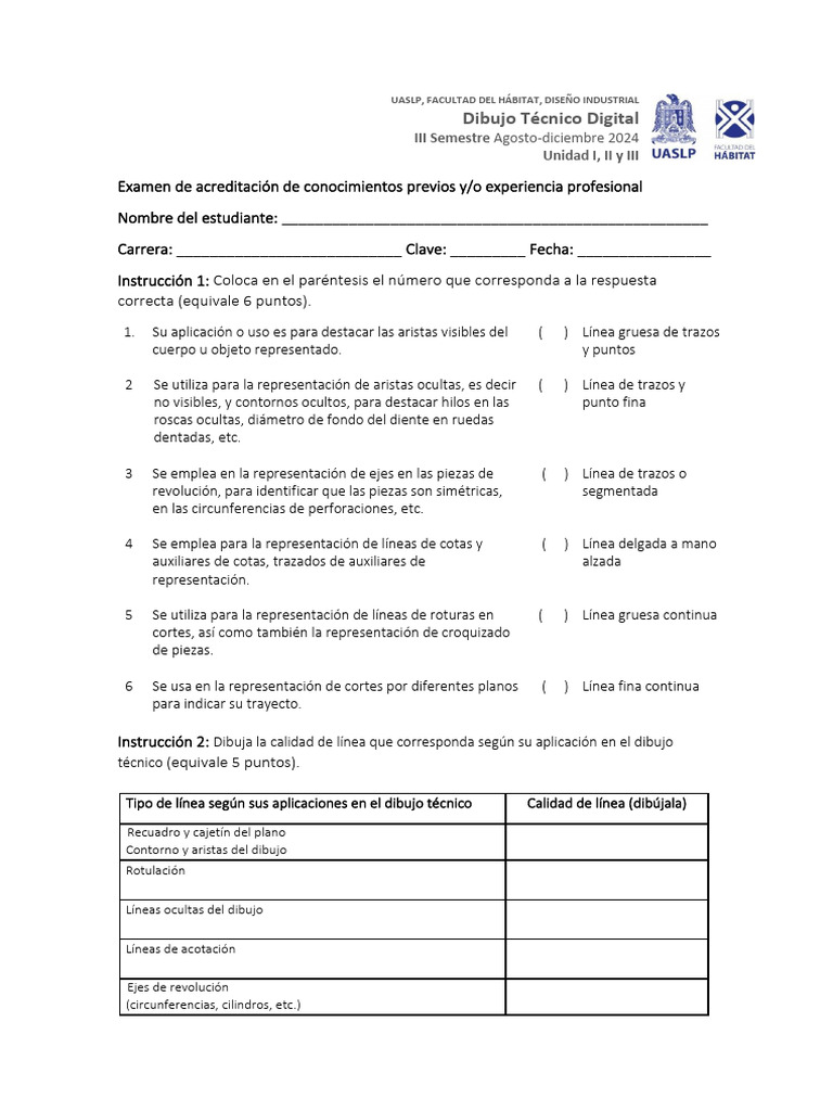 Instrucción 2: Dibuja la calidad de línea que corresponda según su aplicación en el dibujo