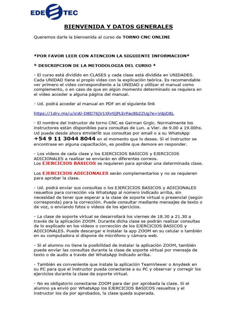 Queremos darle la bienvenida al curso de TORNO CNC ONLINE