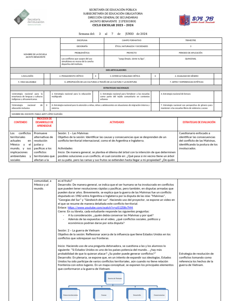 Desarrollo: Para culminar con la localización de los conflictos territoriales, se expone uno de deportivas de su escuela.