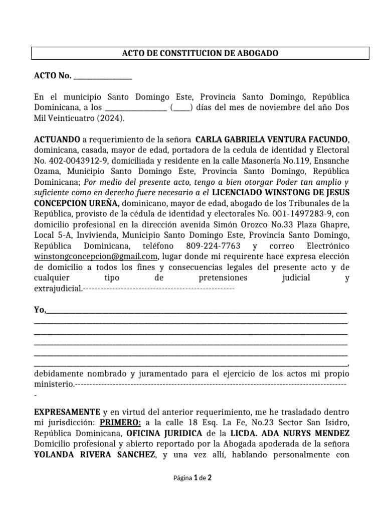 ACTO DE CONSTITUCION DE ABOGADO