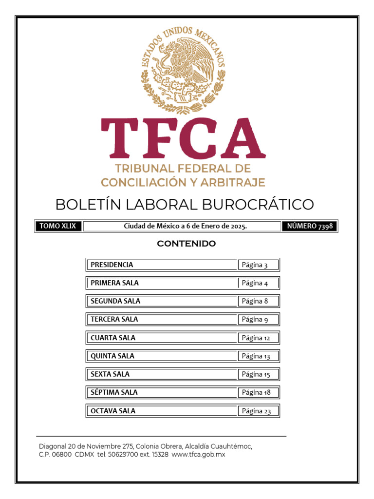 TOMO XLIX Ciudad de México a 6 de Enero de 2025. NÚMERO 7398