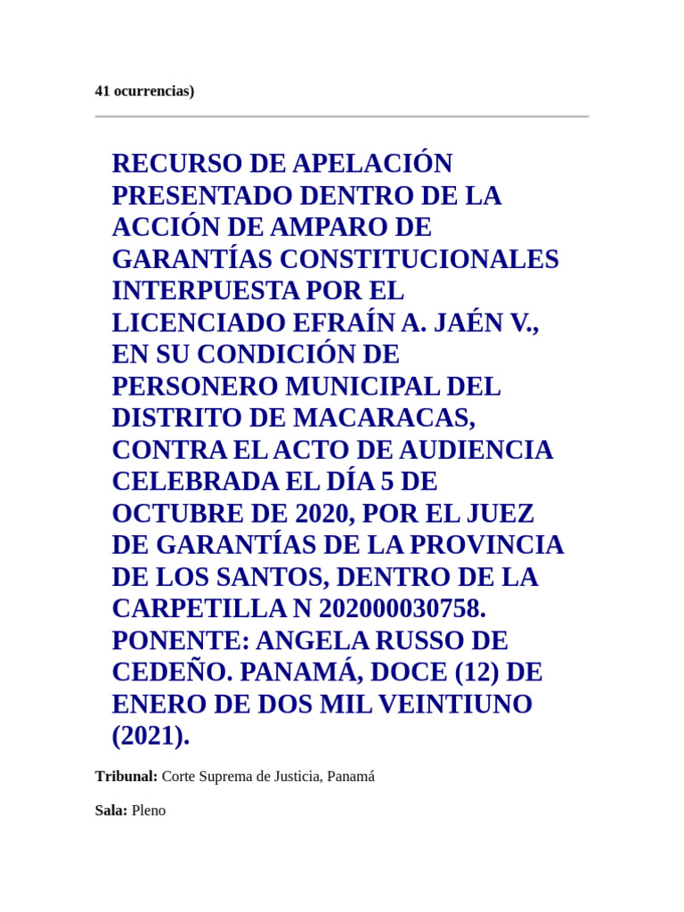 octubre de 2020, por el Juez de Garantías de la provincia de Los Santos,