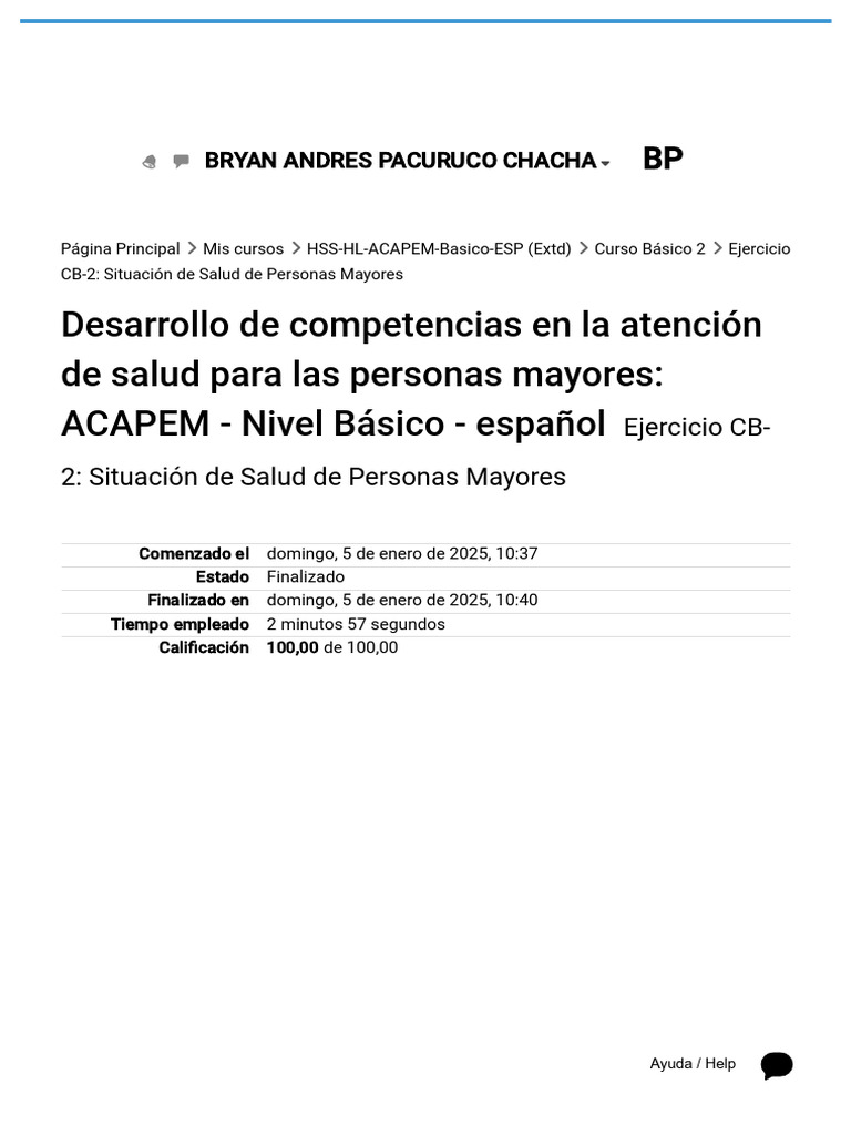 Página Principal Mis cursos HSS-HL-ACAPEM-Basico-ESP (Extd) Curso Básico 2 Ejercicio
