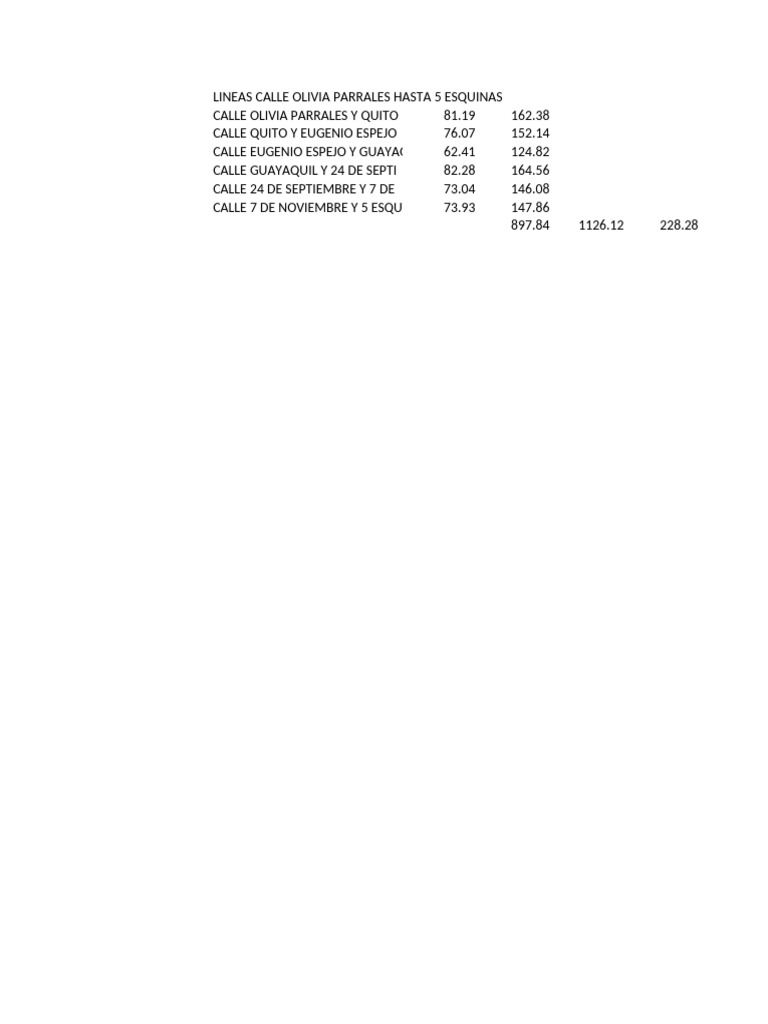 LINEAS CALLE OLIVIA PARRALES HASTA 5 ESQUINAS