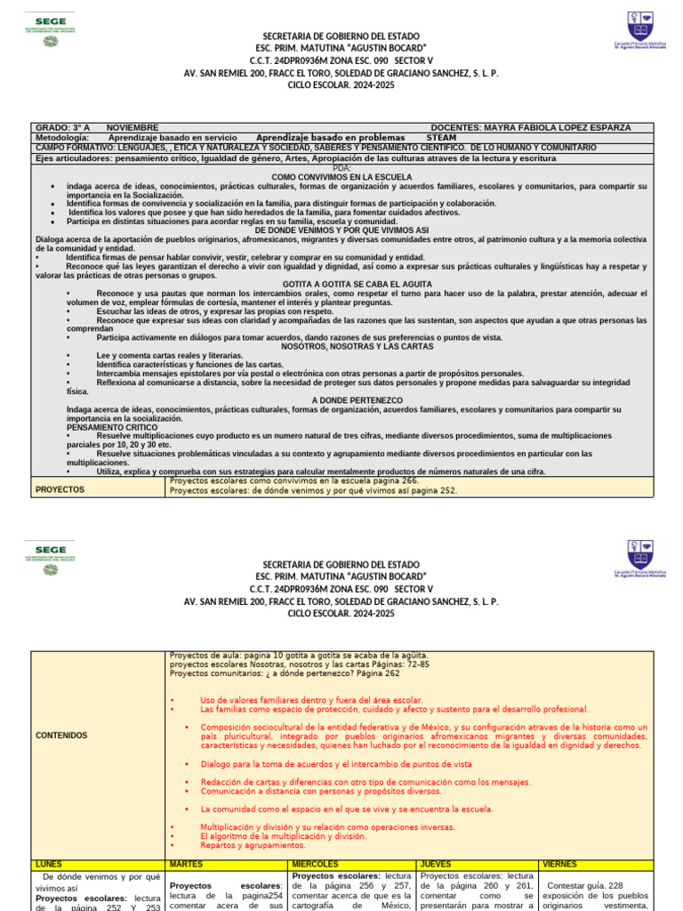 GRADO: 3° A NOVIEMBRE DOCENTES: MAYRA FABIOLA LOPEZ ESPARZA
