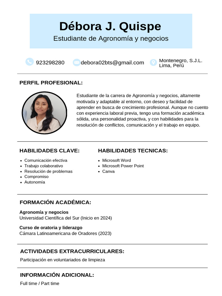 Estudiante de la carrera de Agronomía y negocios, altamente