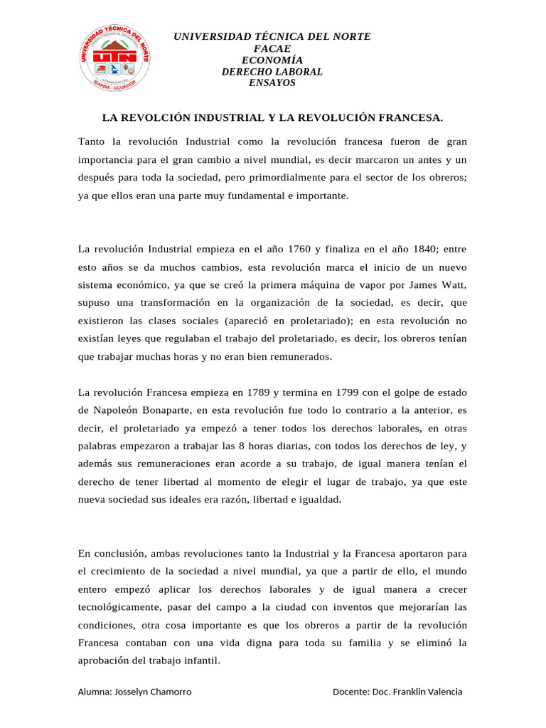 Tanto la revolución Industrial como la revolución francesa fueron de gran