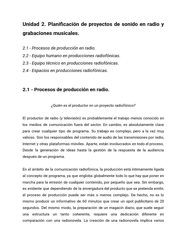 2.4 - Escenarios y espacios en producciones radiofónicas.