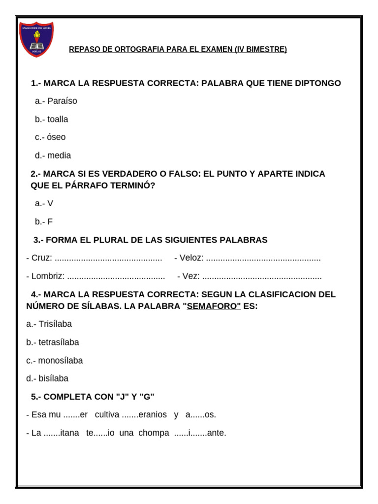REPASO DE ORTOGRAFIA PARA EL EXAMEN (IV BIMESTRE)