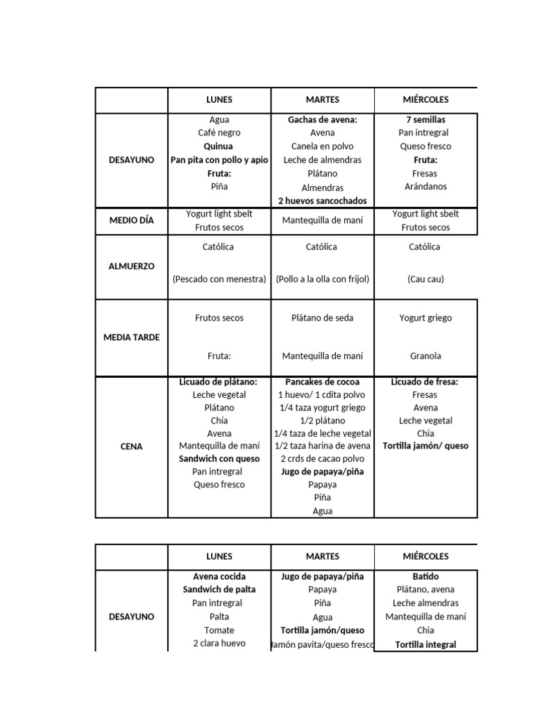 CENA Mantequilla de maní 1/2 taza harina de avena Tortilla jamón/ queso