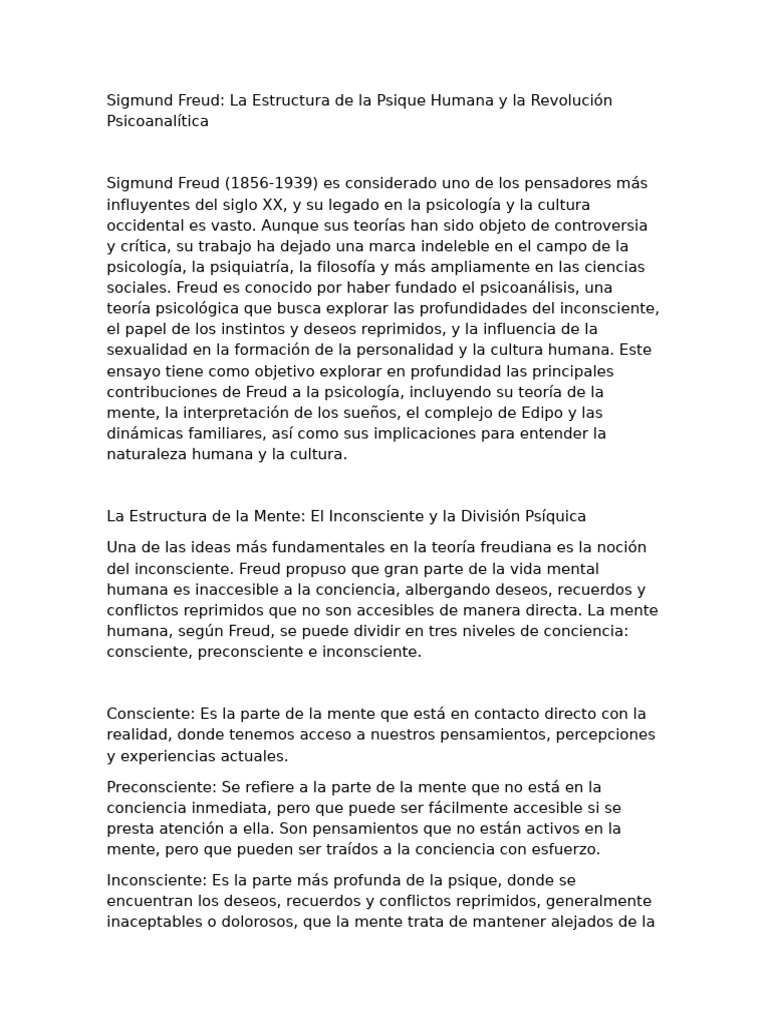 humana, según Freud, se puede dividir en tres niveles de conciencia: