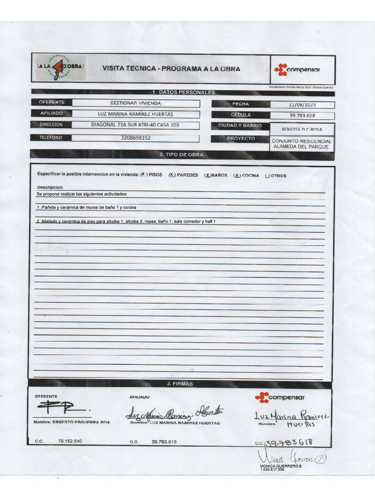A: RAMIREZ HUERTAS LUZ MARINA CC# 39783618 X