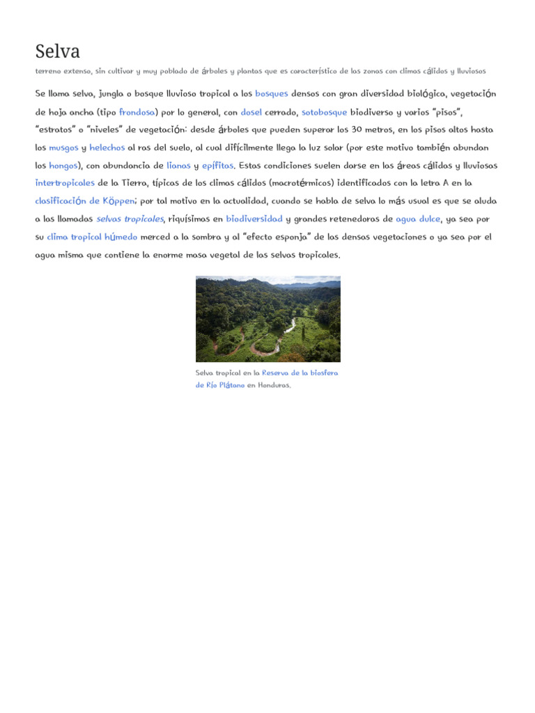 decir, un bosque caracterizado por una extensa biodiversidad y densamente poblado, incluyendo maleza,