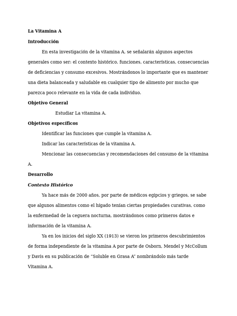 En esta investigación de la vitamina A, se señalarán algunos aspectos