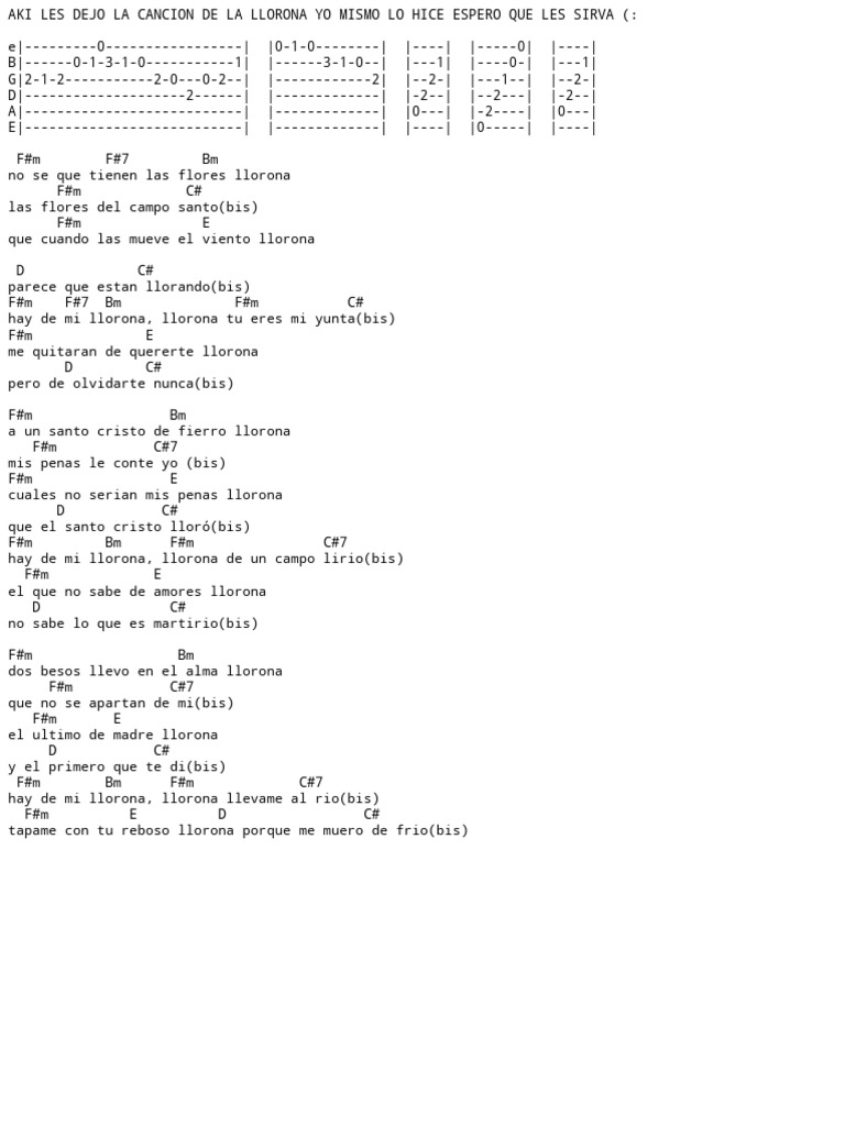 AKI LES DEJO LA CANCION DE LA LLORONA YO MISMO LO HICE ESPERO QUE LES SIRVA (:
