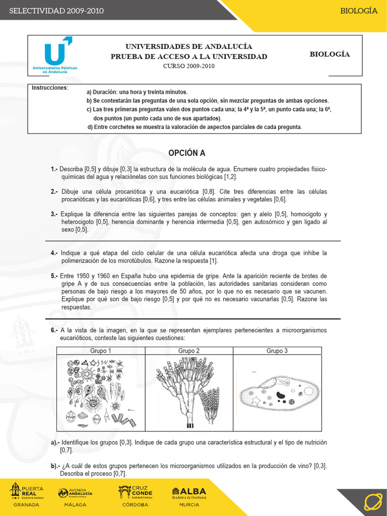 PRUEBA DE ACCESO A LA UNIVERSIDAD BIOLOGÍA