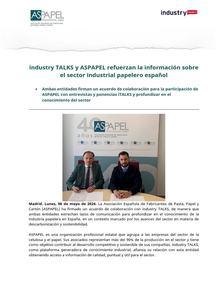 industry TALKS y ASPAPEL refuerzan la información sobre